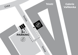K dispozici čtyři vyhrazená parkovací místa (viz mapka).